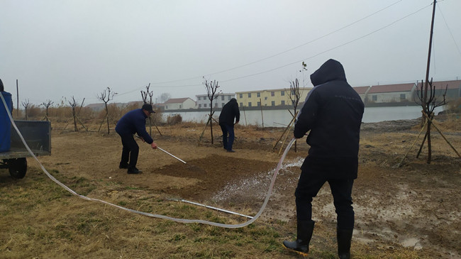 草长莺飞,又是一年植树之际。近日,泰祥公司对办公区域的周边空地进行植树种草美化环境活动。人们拿起铁锹,走进植树区,扶苗、培土、踩压、浇水,让一棵棵小树苗精神抖擞的挺立在土壤中,显示着勃勃生机,随后又在裸露的空地铺满草坪,满眼的绿色焕发新活力。