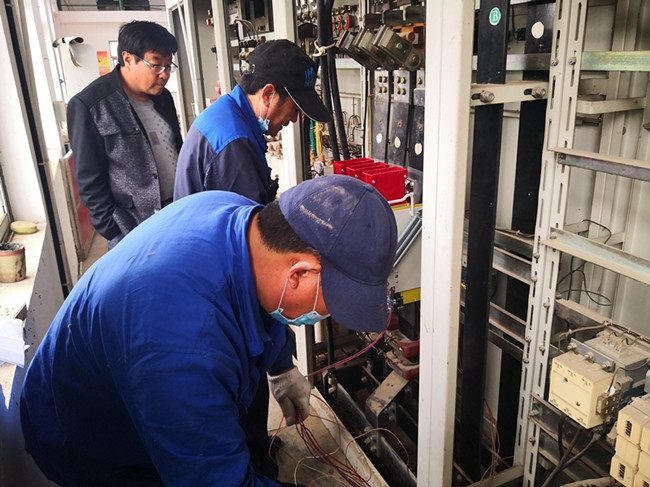 4月19日,生产生活服务中心特邀连云港市国瑞变压器有限公司电气工程师对三洋扬水站配电控制柜进行安全“体检”。工程师们现场解决了部分老化的电气元件问题,重新更换DW15-1600型万能断路器。“体检”过后,工程师给予相关技术指导和意见,为扬水泵站安全运行提供了可靠的技术支持和设备保障。(服务中心)
