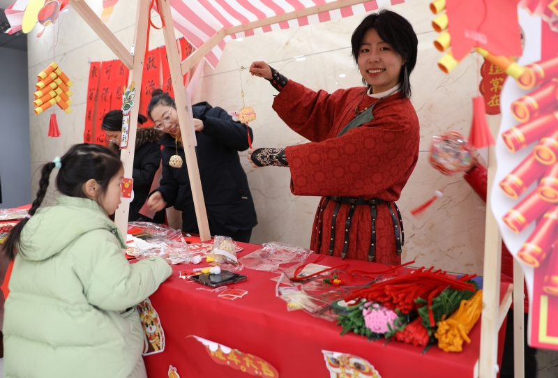 剪窗花、写对联,是迎接新年必不可少的传统习俗,承载了爱体育首页(中国)网页版对新一年的美好期望。在传统民俗区,大家沉浸式体验这些传统习俗,有的挥毫泼墨,“写春送福”,有的剪纸寄情,剪出各种各样象征生肖、团圆、吉祥的窗花,不一会儿,一幅幅满载新年祝福的春联,一张张年味浓浓的窗花,就展现在大家面前。