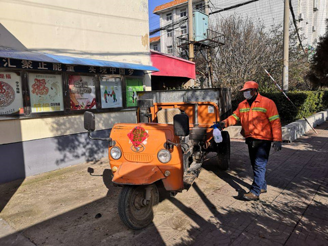 “回家吃完早饭再继续清扫!”——多么朴实无华的声音从环卫工人戴着口罩的笑容下发出,这是来自生产生活服务中心环卫班组的响亮声音。