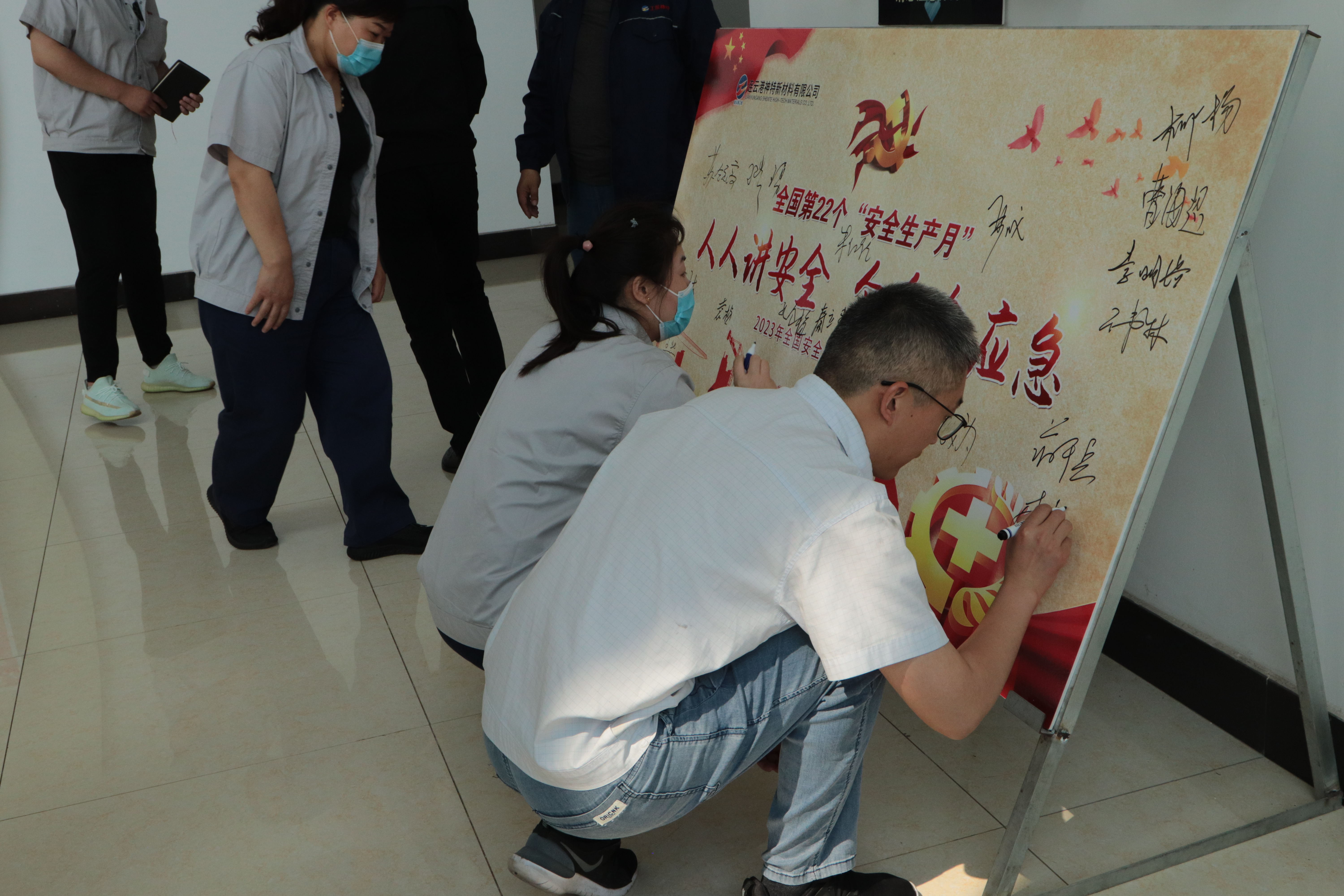 会后,参会人员在“安全生产月”签名墙上郑重签名承诺。(毛广江)