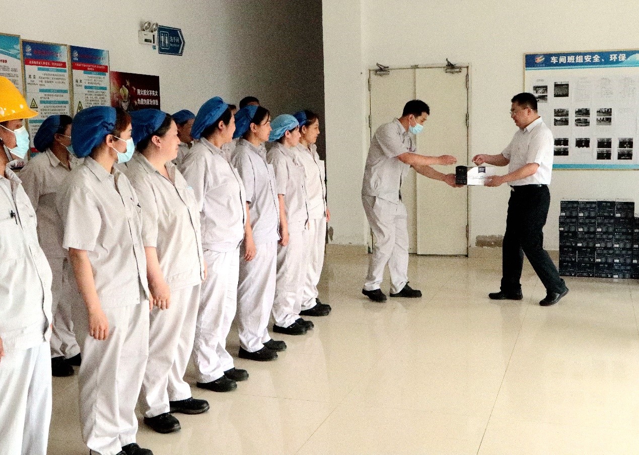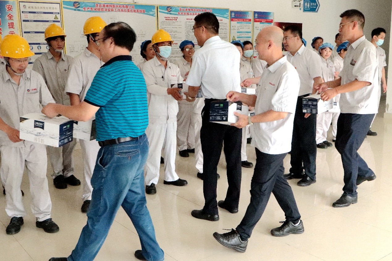7月28日上午,爱体育首页(中国)网页版公司党委副书记戴鸿鸣、工会主席刘承志一行到公司慰问生产一线员工,为生产一线员工送来牛奶、绿豆、白糖、大米等防暑降温慰问品。公司董事长张斌、总经理韩立新等领导陪同。