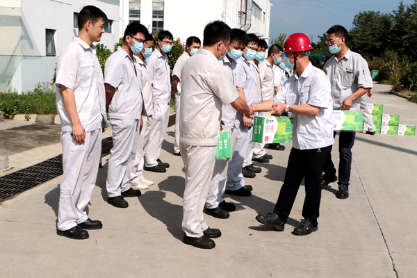 7月30日上午,公司党支部书记、总经理韩立新代表公司开展夏季送清凉活动,为全体职工送上组织的关怀和贴心准备的牛奶等防暑降温慰问品,送来一缕清风。(神特宣)