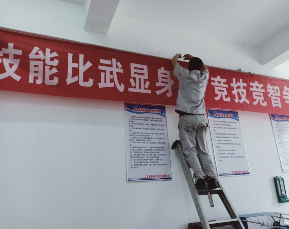 为营造技能大赛氛围,77日上午,品质管理部特地请维修组件班组朱师傅、王师傅在品质管理部办公区挂上宣传横幅。维修组件班组的两位师傅不怕麻烦,多次调整横幅的角度,力求做到尽善尽美,为营造技能大赛氛围贡献自己的力量。