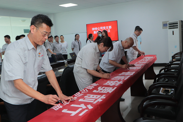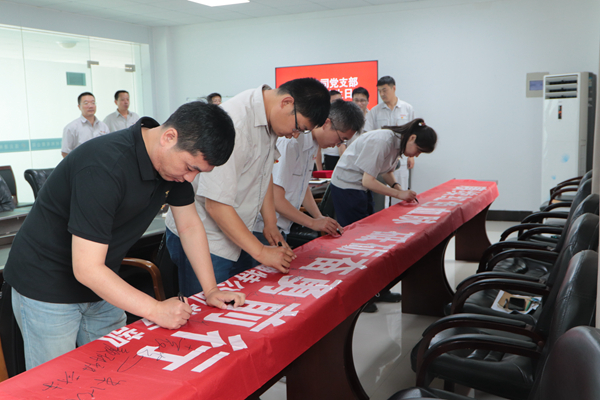 在七一来临即将来临之际,公司开展集体政治生日活动,组织全体党员赓续红色血脉,砥砺奋勇前行。活动中,与会党员重温入党誓词,回忆入党初心,并在条幅上签名,作出郑重承诺。公司党支部对5名优秀共产党员进行表彰,激励全体党员学先进、作表率,以优秀的成绩向建党100周年华诞献礼。