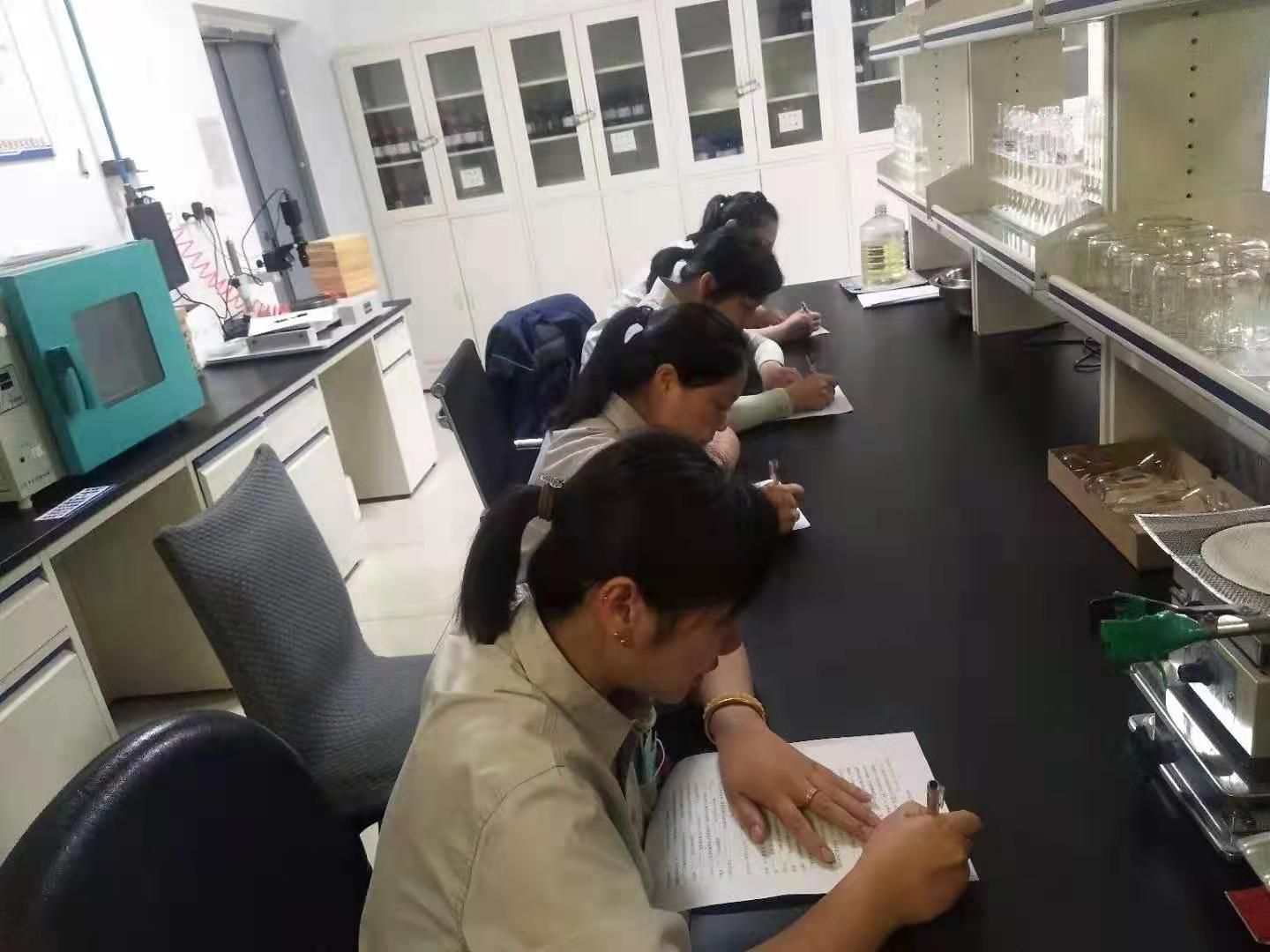 在公司停产检修期间,品质管理部以试卷答题的模式对化验、物检、包装分岗位进行了业务培训。