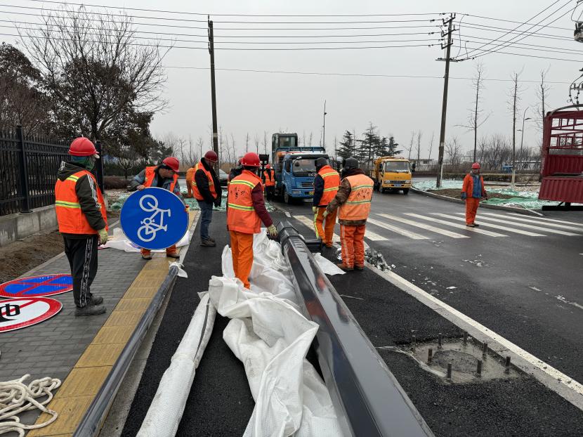 立足优质服务,确保维护管养及时高效。盛达市政分公司根据公司上级交办的重点工作,以及一季度观摩会活动线路保障等工作,积极完善辖区主次干道、公园、广场的市政设施,认真履职尽责,保障市政设施完善,做好下水管网运转通畅,巡查人员冒雨坚持道路巡查,对辖区下水管网进行摸底排查,及时清理疏通堵点,对积水严重路段设立警示标志,并利用抽水泵等重型设备疏导积水,确保辖区不出现大面积积水,保障了辖区人民群众的出行安全,一季度顺利完成辖区井篦、井盖更换安装合计约200套;另外,友谊路交黄海大道、兴业路交黄海大道、平山路交黄海大道雨水管网改造工程正在有序开展中