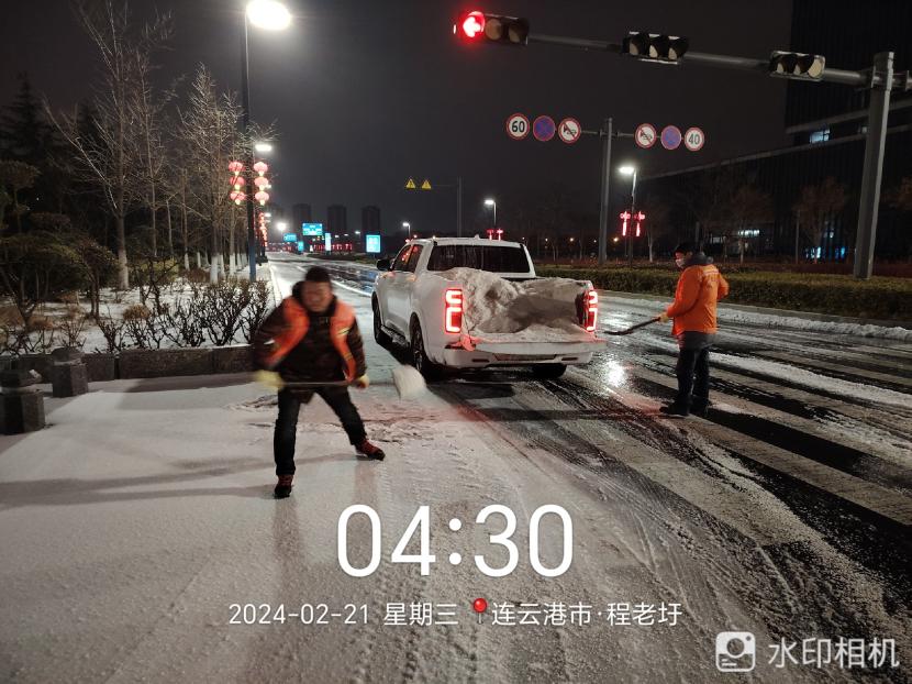 2月20日晚,港城迎来又一轮降雪,低温雨雪冰冻天气对城市道路交通和市民出行产生较大影响。为确保雪天道路畅通及市民出行安全,绿化分公司闻雪而动,从2月19日晚开始,组织应急队伍连夜行动,在花果山大道、黄海大道等开发区主干道抛撒融雪剂,开展清雪除冰工作,掀起一场齐心协力、团结互助的战风雪、保通畅行动。