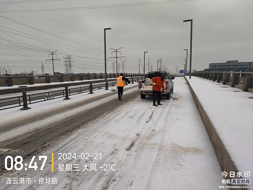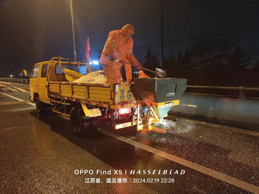 本次除雪采取随降随清、连续作业的方式,及时、快速清理路面积雪,同时根据积雪厚度,采取撒融雪剂、铲雪车推雪以及人工配合等多种除雪方式进行紧急除雪除冰作业。