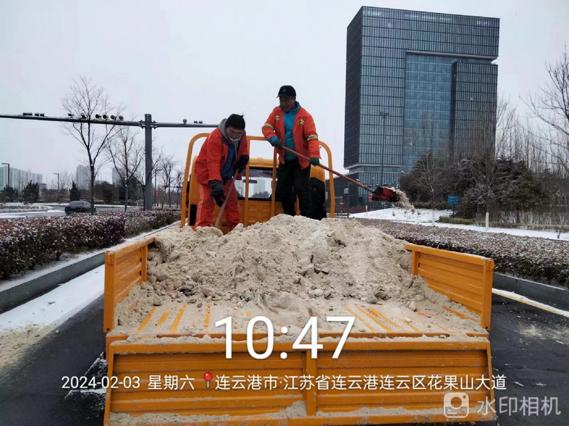 “雪情即战情”。天刚蒙蒙亮,猴嘴、开发区、连云、墟沟····连云港火车东站、马山立交、黄海大道、花果山大道、东方大道·····到处是台北、华茂公司的“橙色”突击队