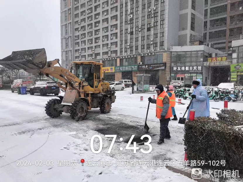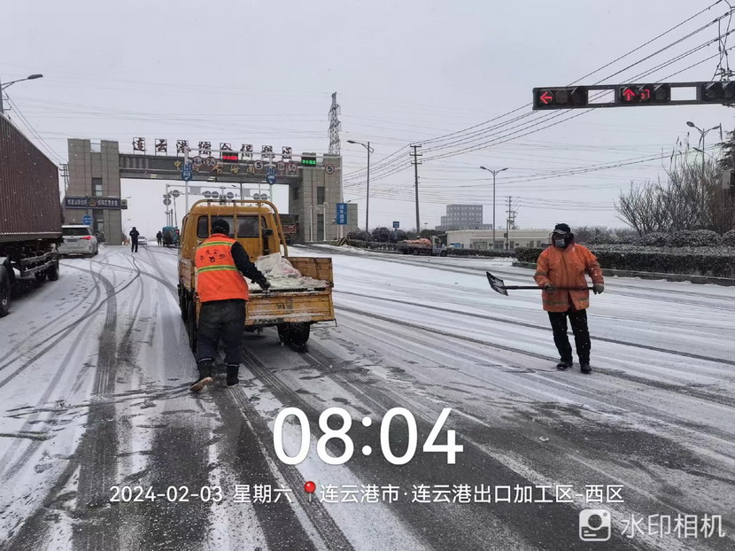 2月3日凌晨,港城迎来大范围降雪,台北、华茂公司作为开发区除冰除雪、环卫保洁中坚力量,切实做好辖区道路除雪保畅工作,充分发挥出人员、机械优势,确保道路安全畅通,环境卫生整洁有序。