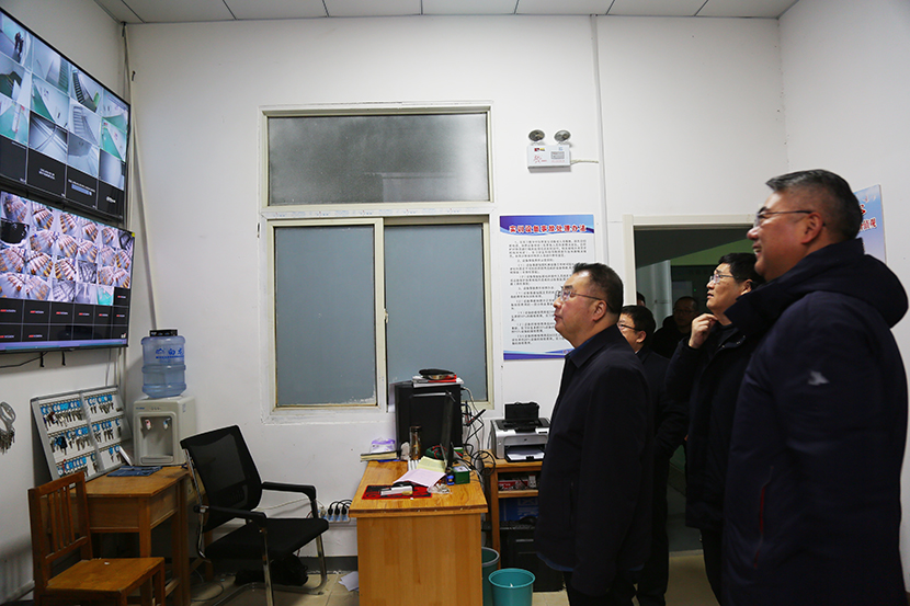 1月31日下午,爱体育首页(中国)网页版公司党委副书记戴鸿鸣安全检查组一行,冒雨到投资公司开展节前安全检查,公司党委书记、董事长、总经理王德志,安环部部长李明等陪同检查。