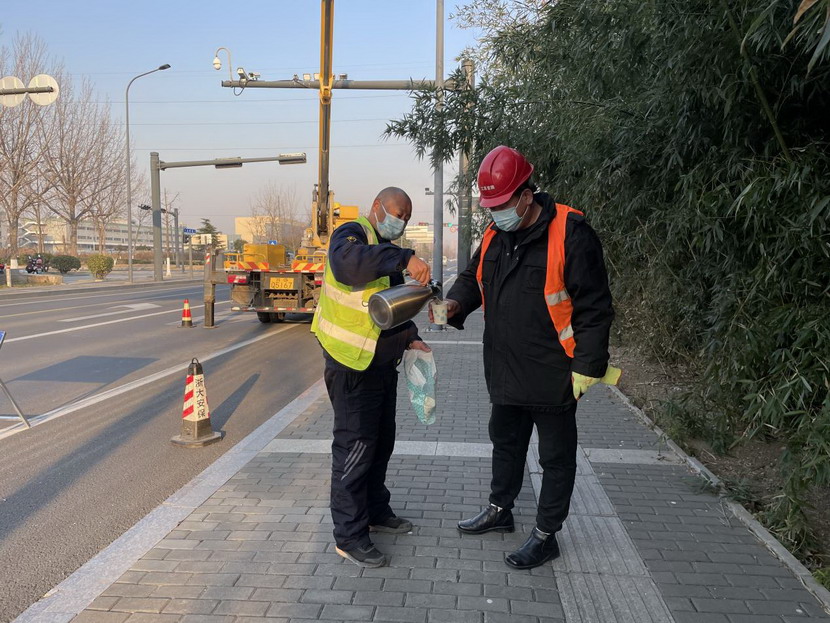 兵马未动,粮草先行。翔立分会充分做好后勤保障工作,精心做好各项贴心服务,确保铁军出征无后顾之忧。考虑到传统安全帽冬季不保暖,分会走访多家店铺,购置皮棉质硬顶安全帽,配备加绒保暖手套,让职工在高空作业时既保暖又安全;天气寒冷,为了让职工能够喝上一口热水暖和暖和在工作,特意准备了姜茶水送到现场;为了解决吃饭难问题,分会一直在与快餐商家联系,这家阳了不能送,马上联系下一家,前前后后换了4家快餐店等等,充分保证铁军的后勤保障无忧。