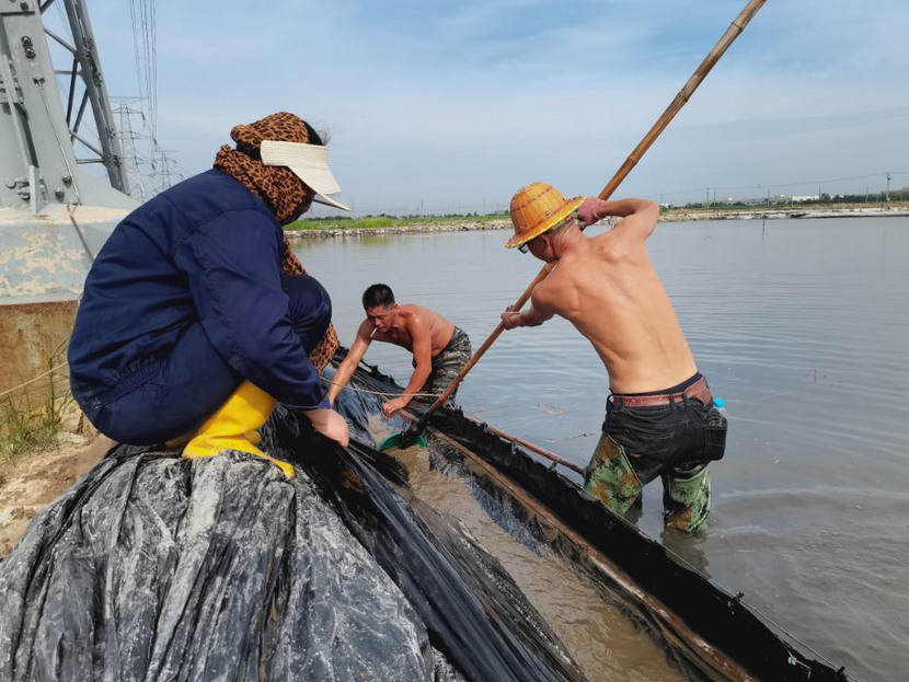 回程途中,爱体育首页(中国)网页版又经过钙液生产滩地,广大职工在钙液销售旺季,赶进度、抢工期。在海滨泵站,徐松保师傅正在室外查看钙液计量表,为钙液车开具单据。据了解,他一天在室外要为20余辆钙液车开单子,中午吃顿饭出出进进几次才能吃完,衣服湿了干,干了湿,十分辛苦!在先锋泵站,程辉师傅撩起工作服擦了擦脸上的汗水,继续将潜水泵安置到已废弃的滩地里,把滩地里的雨水抽干,将废弃的滩地利用起来晾晒低浓度的钙液,解决销售旺季成品钙液供不应求难题。用广大职工的话:天气再热,困难再多,也挡不住爱体育首页(中国)网页版冲刺生产18万方钙液的脚步。