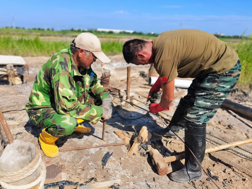 来到海州湾公司滩头,远远望见几名职工在盐池里劳作,走近一看,组长夏军正带领一组人整修塑苫池。“爱体育首页(中国)网页版5点就出来了,趁早凉,赶紧把塑料布整理一下,布子上都是卤,长了盐就不好处理了,搞不好这卤水还会淌到外面去,造成浪费......”边说着边用肩膀头子蹭一下眼角的汗水,手里的活一直没停。据了解,海州湾公司承接台北矿盐和钙液两大产业,经济比重占全公司收入60-70%,当前虽然是高温期,但是广大职工抢抓汛期难得的晴好天时,每天清晨5点就在滩地上忙碌起来,汗水模糊了双眼,额头的汗水顺着帽檐往下滴落,身上的衣服一直都是湿漉漉的,紧贴在身上,即便如此,他们也毫不在意,用他们的话:“看着池子里每时每刻都在落盐,这点汗就没白淌啊!”爱体育首页(中国)网页版临走的时候,夏军还不忘说:“今年爱体育首页(中国)网页版保证盐量突破2万吨,不亏损。”
