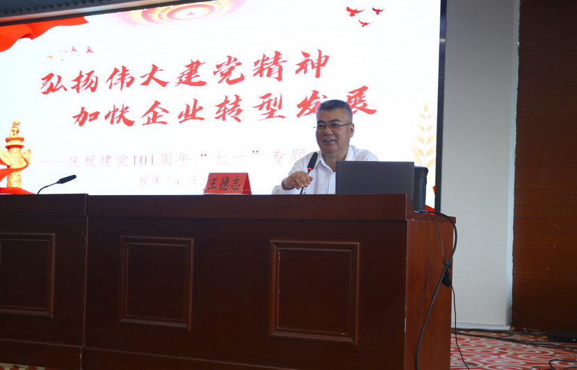 公司党委书记、董事长、总经理王德志为与会党员上“七·一”专题党课。他生动地阐述了自建党以来,中国共产党一代又一代的领导人带领中国人民谋幸福的伟大征程。王德志指出2019至2021三年间,公司业绩实现“三连增”,顺利完成“一减半、两年扭亏、三年新高”的发展目标。
