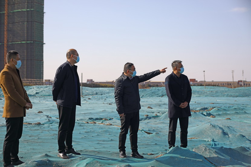 杨龙董事长一行首先检查货场道路和地面硬化情况,然后对未用地块裸土苫盖情况进行现场督察。
