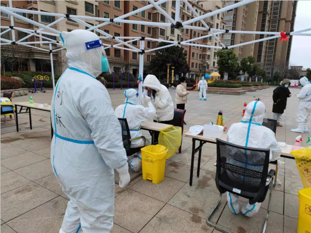 3月15日,公司紧急发通知,需要一名志愿者进驻同科志愿服务。与以往志愿服务性质不同的是,这次要24小时驻扎在同科,晚上也只能睡临时搭建的帐篷。刘林,作为公司年龄最小的员工,却在第一时间自告奋勇的报名。志愿服务的第一天,刘林先学习穿脱防护服、鞋套,然后协助工作人员采集信息、检查健康码、维持现场秩序、解答居民的各种问题。这样的工作,从早晨一直持续到晚上。简单吃完晚饭,紧接着是补录绿码人员。等所有工作结束,再进行周围环境的全面消杀工作。防护服一穿就是一整天,每每脱下时,已是皮肤发皱、衣服湿透,面屏里泛满水珠……已经连续工作2天的刘林说,“累,但爱体育首页(中国)网页版必胜,坚持就是胜利!”