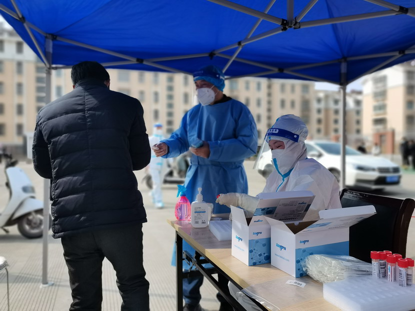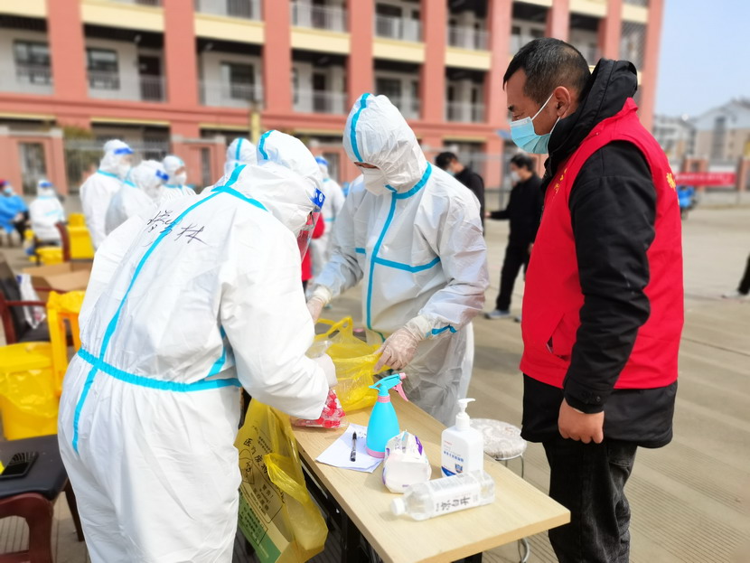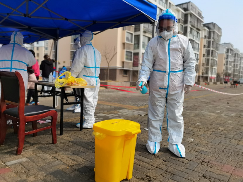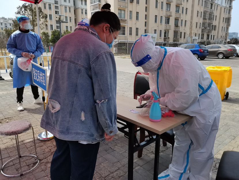 清晨6点30分,1号检测点,李明同志在检查物资,“大白”服装4套、“小蓝”服装6套、棉签600根……;2号检测点,于洪亮在将物资上桌,病毒核酸检测试管、棉签、消毒液,“还缺少一瓶酒精,我立即反馈给社区,请社区抓紧安排送来”;4号检测点,苏玲、秦黎明正在互相帮忙穿好防护服,“秦姐,这个防护面罩里外有两层薄膜,我给你撕掉,这样就不会有雾气了”,“嗯嗯,你这个拉链得拉到顶,爱体育首页(中国)网页版自己也一定要做好防护”秦黎明温柔的说;5号检测点,内退党员孙芳和姜海洋,互相在防护服后背写上对方的名字,以便于更高效的完成检测工作;6号检测点,霍正钢、朱文健、韩永刚、邱荣滨正在清点检测小卡片;7号检测点,张强在拿着酒精给废物处置垃圾箱消毒;8号检测点,新加入的孙银、占恒春、尹永明、韩永光、赵绍庆正在给消杀喷雾剂灌装84消毒液,社区8个检测点的消杀工作全部由昌圩临时党支部志愿者负责。
