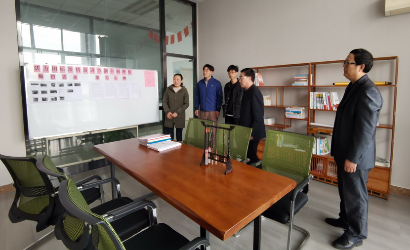 调研组一行着重查看美多利公司三组联建室,听取相关汇报,同时现场查看三组联建相关台账。