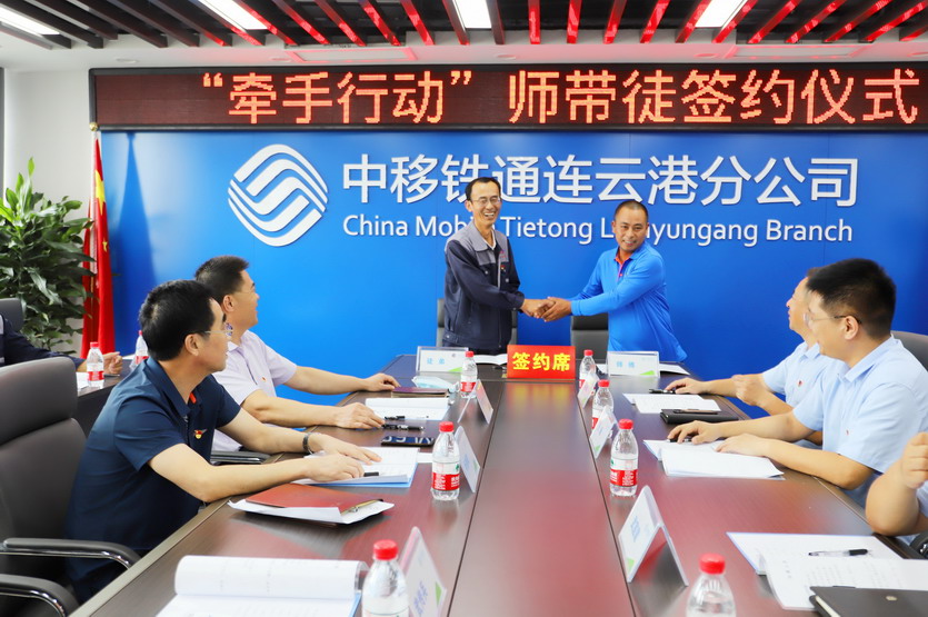 “党建和创”是台北投资公司、中移铁通连云港分公司基于产业转型战略合作的党建保障工程。“牵手行动”师徒结对是公司按照建设知识型、技能型、创新型劳动者大军这一目标任务,切实加强新时代产业工人队伍建设,大力弘扬工匠精神,充分发挥工匠的示范带动作用,拓展职工职业技能培养的重要途径。通过师带徒方式培养通信工程技术人员,为公司在推进通信工程业务承接中建队伍,打基础,推进新一轮产业转型走的更坚实、坚定,为公司高质快速发展增添新动力。