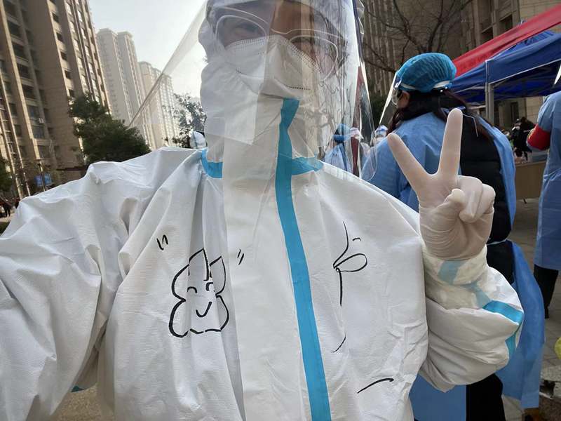 3月12日,晴,8:00到达社区核酸采样点,准备上岗,社区负责人给爱体育首页(中国)网页版进行了“防护服穿脱”及防疫知识的讲解学习等一系列十分细致地培训后,有点兴奋的穿好“大白服”,带上手套、头套和面罩,社区阿姨还帮我在衣服上画上了可爱的涂鸦;