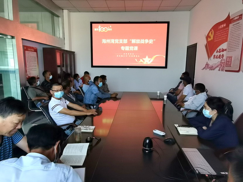 为扎实推进党史学习教育深入开展,强化学习实效,8月25日下午,海州湾党支部组织全体党员和入党积极分子上了一堂生动的党史学习教育专题党课。