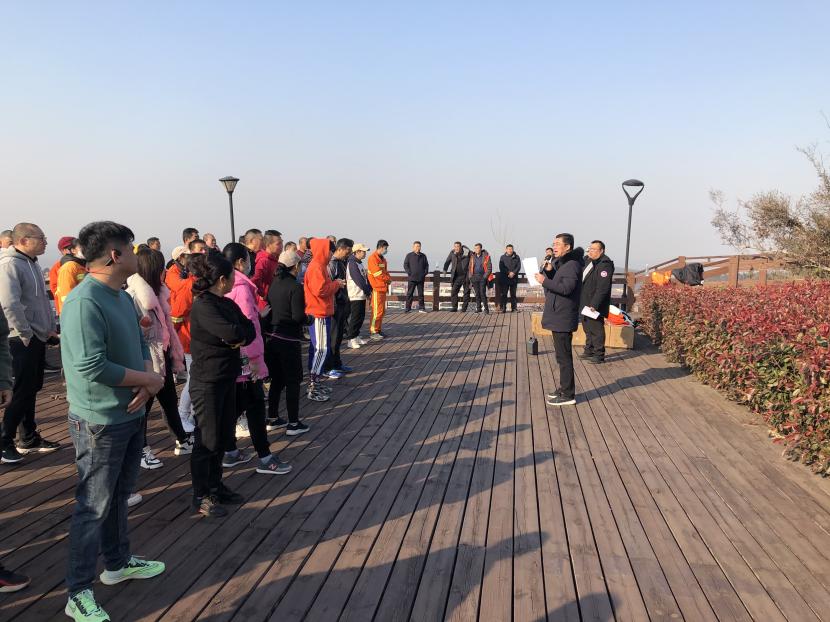 赛前,组委会工作人员开始了忙碌而紧张的检录、站点布置,并做好安全保障等工作,参赛选手在栈道起点领取了打卡证,整装待发。随后,裁判员详细宣读了该项的比赛规则,随着董事长王德志宣布比赛开始,选手们像流水一般涌入赛道入口,个个斗志昂扬,你追我赶,奔向终点。