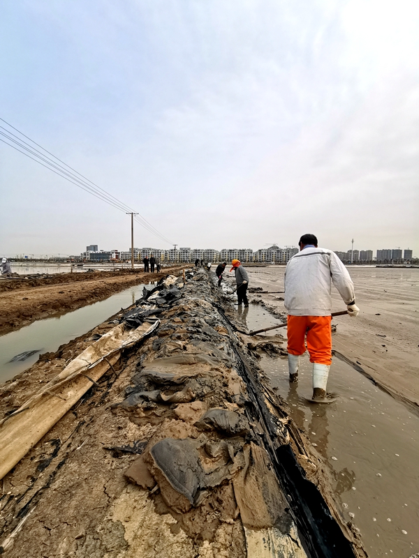 简单交流后得知,东滩4组要赶在月底之前,将原来用作复晒的格块重新改为结晶池,抢抓旺季增加产量,而东滩人员少,工作量大,仅凭现有的10余名职工,等改造完了滩地,可能就已进入了雨季,无奈之下请海州湾公司伸出援手。