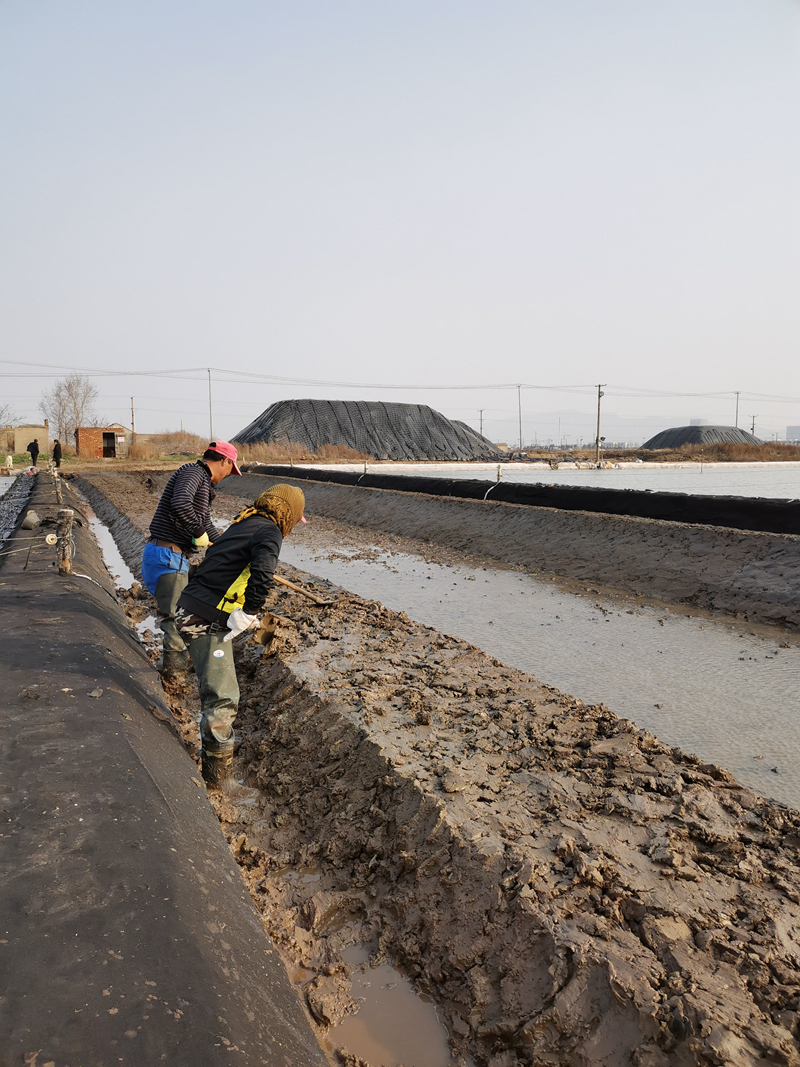 “驾驶挖掘机的是我女婿,这块地以前是征地废弃的,现在打好堰就能用起来。”新上任的领滩手徐传礼指着正在土方作业的挖掘机,算起了账,“今年多产50吨盐没问题,自掏腰包改造还是划算的。”