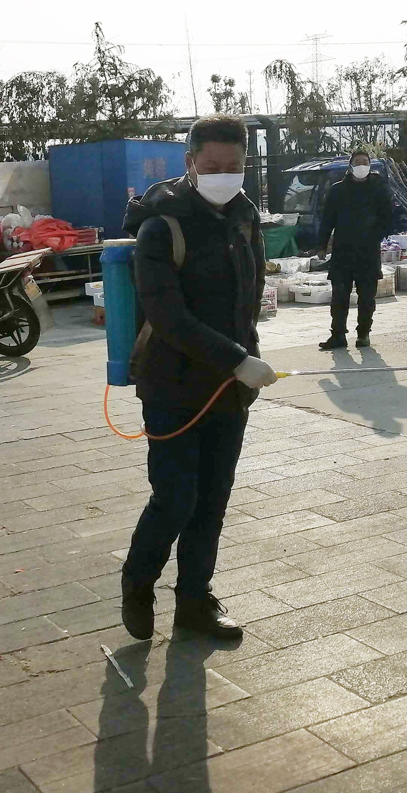 义务消毒,没有报酬,得随时待命,看起来是应者寥寥的苦差。在昌圩湖职工小区和公司机关大楼,却穿梭着这样的身影。他们背着装满消毒液的喷壶,穿梭在社区街道和办公场所,把消毒液喷洒到的每一处。