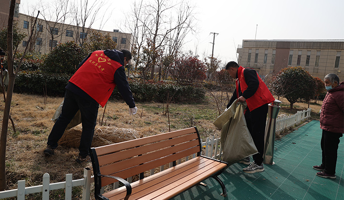 青年志愿者来到张圩小区开展义务劳动,活动中,青年们积极发挥奉献精神,不怕脏、不怕累,个个奋力争先, 分工有序,两人一组对路面和绿化带内的垃圾进行捡拾,许多垃圾藏在绿篱内也逃不过青年们的眼睛,大家认真把长期无人清理、死角等垃圾杂物清理运走。经过二个多小时的持续奋战,小区焕然一新。