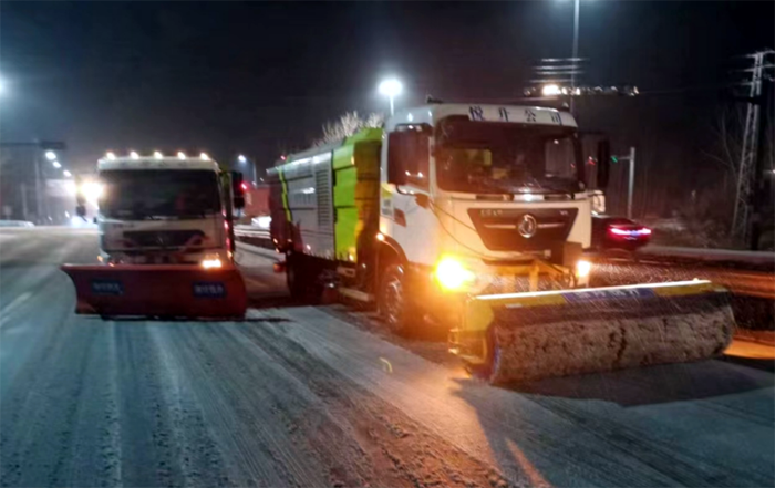 坚持包网定位,协作联动到位。该公司第一时间启动扫雪除冰应急预案,主要领导统筹推进,分管领导指导督促分片、重点区域工作,定位分公司配合做好包片各项工作。组建共200余人6支扫雪除冰应急队伍,加强应急队伍人员培训和指导,具备快速响应能力,实现主次干道、核心区等重点区域路面无积雪。悦升保洁分公司突击队员在统一指挥调配下不分白天与夜晚,每天工作10个多小时,工作现场尽管手磨出了血泡,仍然坚守道路最前沿。党员先锋张学军、薛明柱、杨静、石峰、朱海勇等同志更是率先垂范,党员模范作用有力得以彰显。到目前为止共人工撒放融雪盐斤60多车,500多吨。