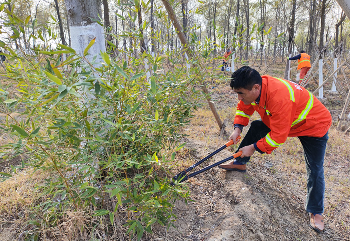 当前,为扎实做好冬季树木养护工作,提高树木的过冬、抗病和抗虫能力,李传武带领班组全员开展树木涂白行动,悉心为树木披上“防寒衣”。为达到同一标准,他采用“立杆涂白法”,首先安排专人进行划线,将行道树涂白高度统一控制在1.2米,使区域内涂白高度保持一致,确保树木涂白效果与植物整体美观,经过10天的持续工作,完成10000余棵行道树涂白工作(完成工作量约20%)。