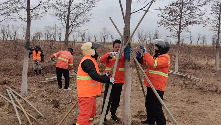 昨日,空气温度骤降,伴随着大雨。绿化分公司立即启动应急预案,各班组强化辖区内乔木加固支撑防止树木倒伏、加挖排水沟保证排涝处理等措施。应急维护工作全体人员24小时值待命,确保第一时间将险情排除。