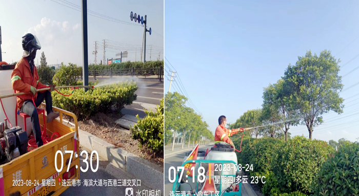 8月23日,绿化分公司管养辖区内进行植物病虫害专项检查。检查中发现徐新路、228国道、南京路、上海路等出现病虫害,造成苗木一定的枯死、病害。该分公司根据苗木习性迅速制定整改方案对症下药,实行按片划分,责任到人。各班组抓住病虫害防治的有利时机,严格执行农药安全使用规定,采用生物制剂等低毒高效农药,严格控制用药比例,利用机动喷雾器等工具进行喷洒农药。对枝干害虫较严重的树木,进行重点清理,增加喷药次数,全方位控制病虫害疫情的扩大和蔓延,有效保护了徐圩新区绿化植被的健康生长。喷洒农药结束后,药罐统一回收,按要求处理,预防二次污染。