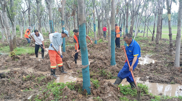 7月4日,大雨渐渐停息,绿化分公司立即启动应急预案,结合实际制定工作计划,出动3支绿化先锋队开展应急抢险工作,确保第一时间排除险情。