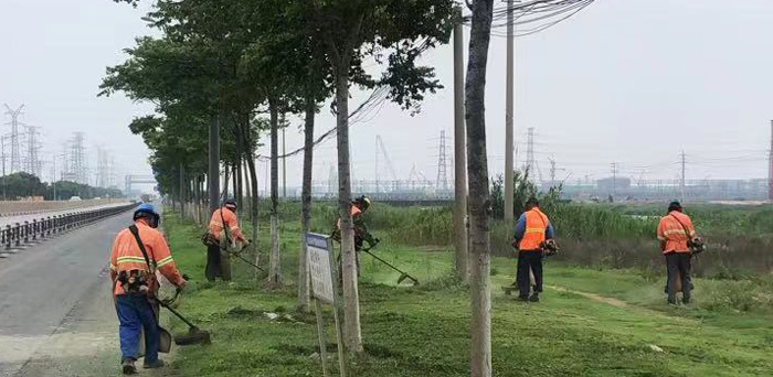32名绿化先锋们快马加鞭赶往新区徐新路、灯塔路、徐圩大道等路段开展行动。工作现场,抢险队员对倒伏树木进行扶正加固支撑;加挖排水沟保证排涝正常;清理道路上断枝、残枝。抢险队员顾不上休息,不停重复实施树木栽植、扶正、加固、断桩清理等完善工作。经过两天的持续奋战,共处理养护区域内倒伏树木20多株、清理断枝10余车,修剪绿化带约5000平方米,累计完成 30%管养区域打药工作。(陈小东)